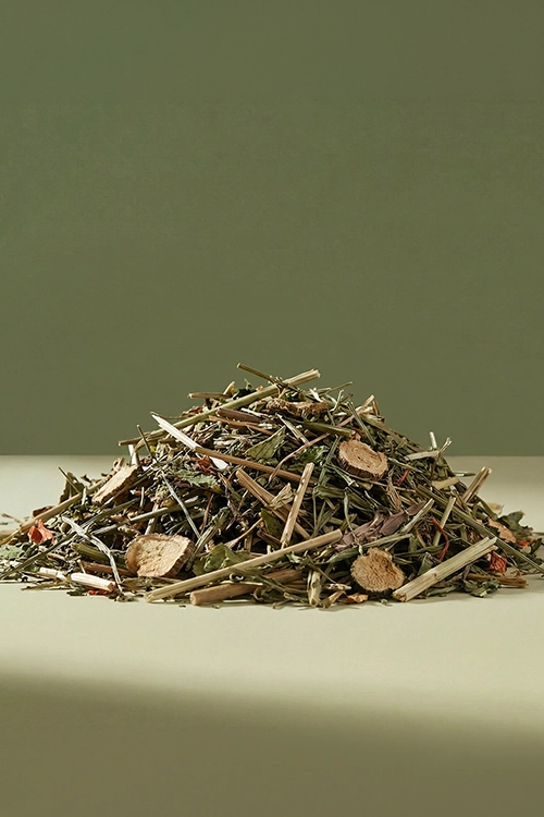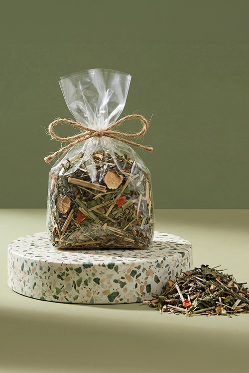 | Skład | Mieszanka ziół (m.in. babka, pokrzywa, mięta) oraz suszonych warzyw (marchew, pietruszka, burak, cukinia) |